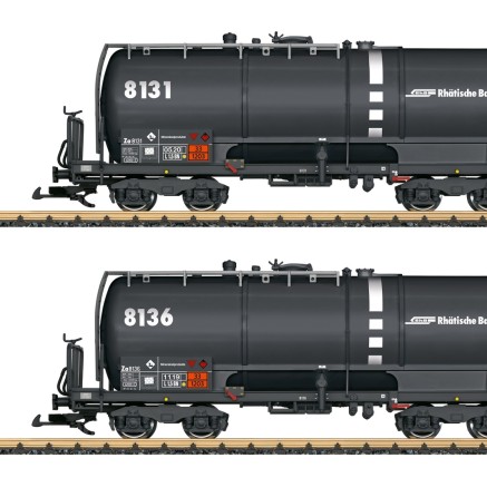 Das Set beinhaltet zwei Kesselwagen der RhB der Bauart Za mit den Betriebsnummer 8131 und 8136. Die Wagen können auch im Modell realistisch befüllt und wieder entladen werden.