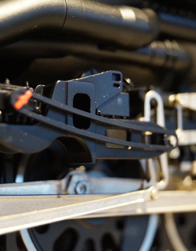 Alle Umbauten die beim Vorbild durch die Umrüstung auf Ölfeuerung vorgenommen wurden, sind bei Modell korrekt umgesetzt. Die betrifft sowohl die Armaturen am Stehkessel als auch die Tendervorderwand.
