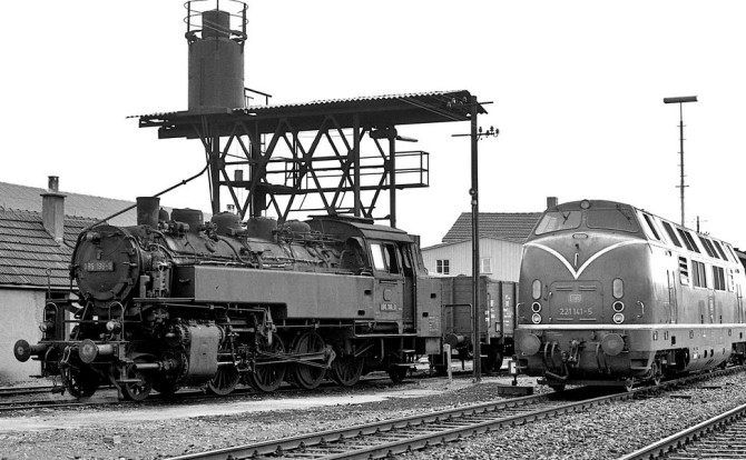 Bild unten: Treffen zweier Generationen. 86 198 lässt die 221 mit ihrem Schnellzug passieren.
