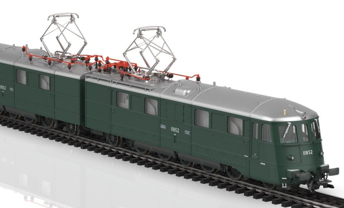 Die Ae 8/14 ist eine schweizer Doppel-Elektrolokomotive mit beeindruckenden Ausmaßen - sowohl im Vorbild als auch im Modell. Die 11 852 war im Vorbild die Weiterentwicklung der Ae 8/14 mit der Nummer 11 851. Das Antriebskonzept wurde unverändert übernommen, allerdings wurde die Leistung merkbar auf ca. 11.000 PS gesteigert. Neu war vor allem der neue Lokkasten mit seinem für die damalige Zeit modernen und fast aerodynamischen Design. Ihre Spitznamen "Landilok" erhielt sie übrigens wegen der schweizerischen Landesausstellung auf der sie 1939 zu sehen war. Märklin präsentiert die imposante Maschine 2024 als komplette Neukonstruktion.